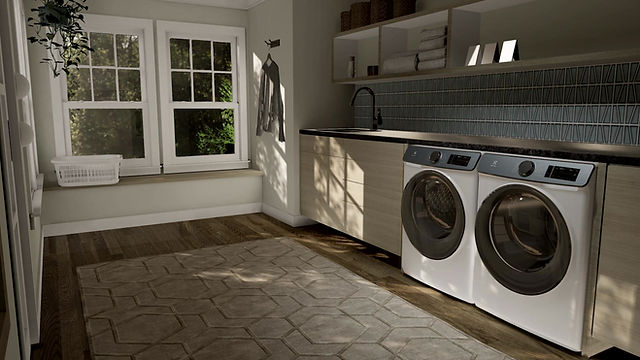 This virtual reality experience introduced a new washer/dryer design in a high-end laundry environment. The user is able to select three available finishes and alternate between side by side and stacked configurations. This project was built in 3ds Max and produced in Unreal Engine 4. I utilized an 8k hdri background, animated machine configurations design alternatives and highly optimized cad. Using baked lighting for VR efficiency, I was also able to use a dynamic sun light to cast moving shadows from the animated trees.
